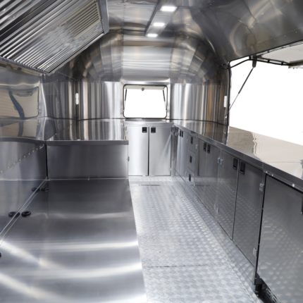 Our Exclusive Trailer is an eye-catcher at every event. The trailer not only scores points with the latest vehicle and kitchen technology, but also with its striking design. The Exclusive Trailer is available in three different sizes. The classic with 4.5m, the medium with 5.0m and the largest with 5.5m cabin length. It doesn’t matter which model you choose, we will customize the conversion to suit your needs.